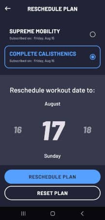 The initial assessment already recommends the best Calisthenics program for your priorities. You can always start the Supreme Mobility program as well. You can change or cancel your programs at any time through the app. Here is an overview of the available programs included in the Cali Move app, with links to in-depth reviews we did for them: