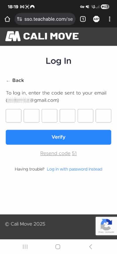 Step 3: Download the Cali Move App and log in using your email address after the initial setup. You’ll be sent another login code.