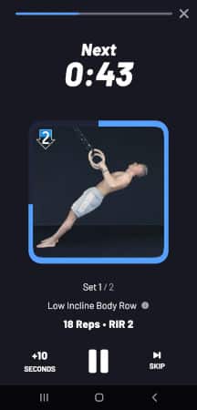 The whole workout runs on timers. You can skip exercise timers (and resting phases), but it’s best to let the timer run and do your best to keep up with the animation or hold on until the timer runs out, while keeping your RiR/SiR in mind.