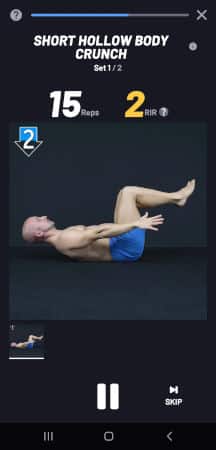 The RiR is a feedback system that allows the app to adjust the progression. In essence, RiR means you stop the exercise whenever you feel you can only do that many more repetitions to failure. I’ll go deeper into the RiR system below.