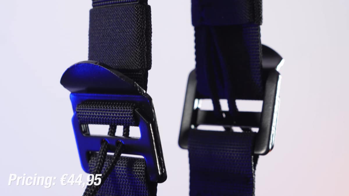 These straps are the most complicated in design. There is an adjustable strap for the door anchor. You also get a separate daisy chain that is adjustable and can be added to the main straps, and the main straps have multiple ways to adjust the length. In theory, this gives you a lot of length versatility, but it can sometimes make for a jumbled mess. A case of German over-engineering, perhaps?